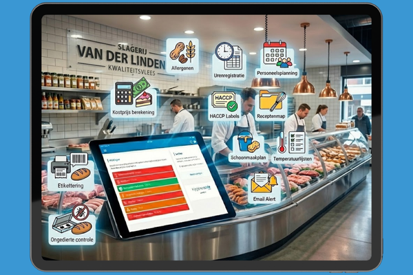 Ons systeem bevat de Hygiënecode Slagerij- Poeliersbedrijf compleet digitaal met HACCP-regels die specifiek zijn afgestemd op slagers en poeliers, opgesteld in samenwerking met KNS en de Poeliersbond. Daarnaast biedt onze nieuwe allergenenmodule en receptenmap met extra functionaliteiten: hiermee kunt u etiketten printen met allergeneninformatie, voedingswaarden en ingrediënten. Dit geeft uw klanten de zekerheid van zorgvuldige allergenenregistratie en de juiste informatie.
