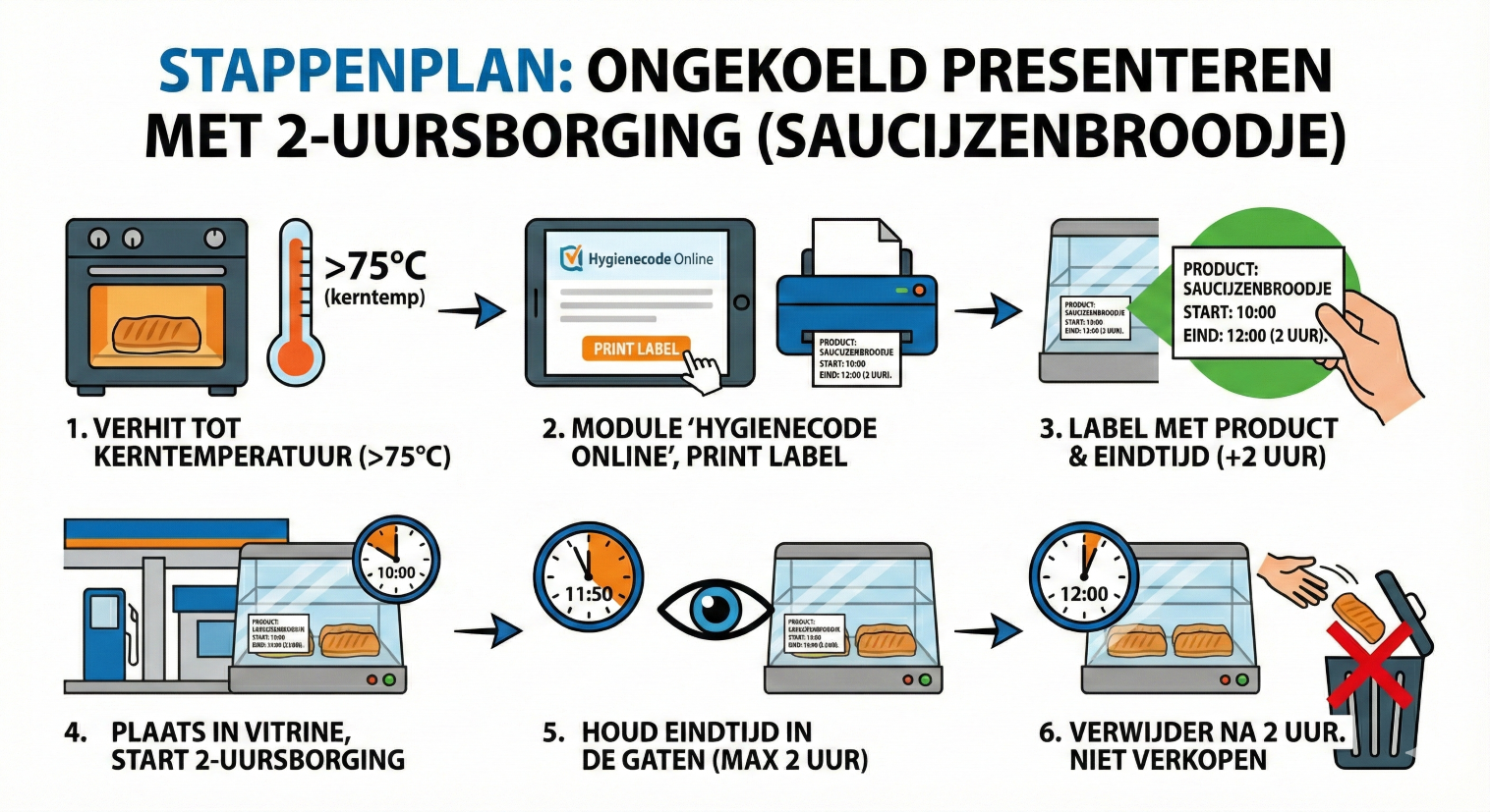 TIP: Restanten van zelfbedieningsbuffetten dienen altijd aan het einde van de dag worden weggegooid; tenzij er geen besmettingsrisico heeft plaatsgevonden. Dit is bijvoorbeeld het geval bij verpakte toetjes, flesjes sap of andere verpakte producten.